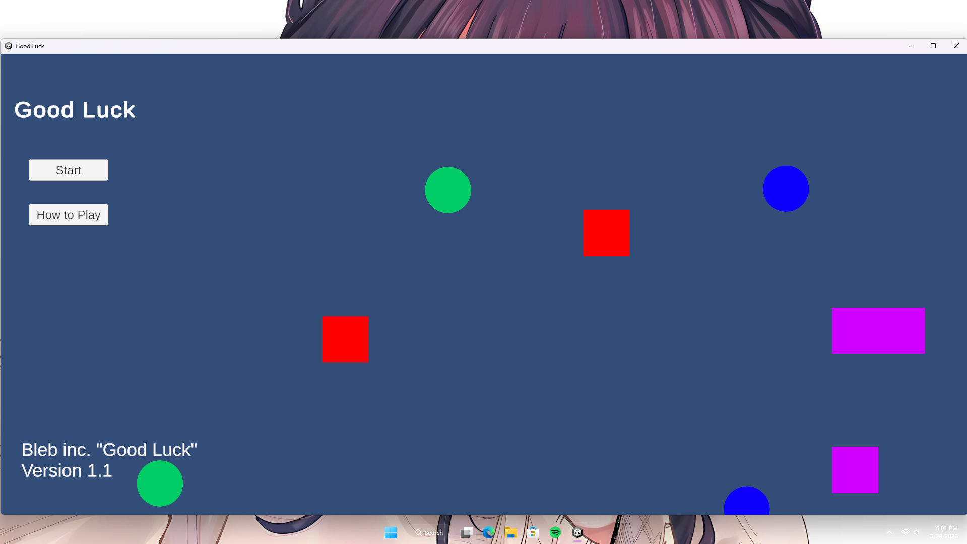 Download the .zip, then unzip it. Double click the application (Good luck.exe) to play.
